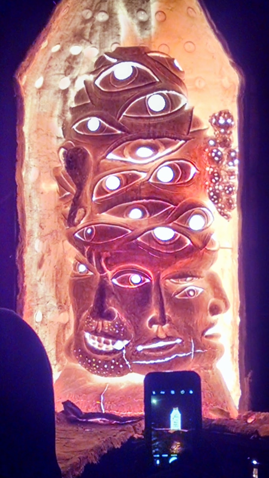 The plan this weekend was that when Jeff was done his shift of stoking the wood kiln, he would come back to Seagrove and bring me to FireFest at STARworks, in Star NC. I really wanted to see this year’s giant sculpture, that was firing throughout the event, being unveiled. At 7pm it was drizzling and 46 degrees outside. I opted to stay home in my pajamas, curled up on the sofa with a glass of wine. Jeff had a few great photos and there was some cool videos posted to Facebook. The sculpture this year was created by Sunkoo Yuh. Firefest is an annual thing. You can read details about the event here: STARworks FireFest
