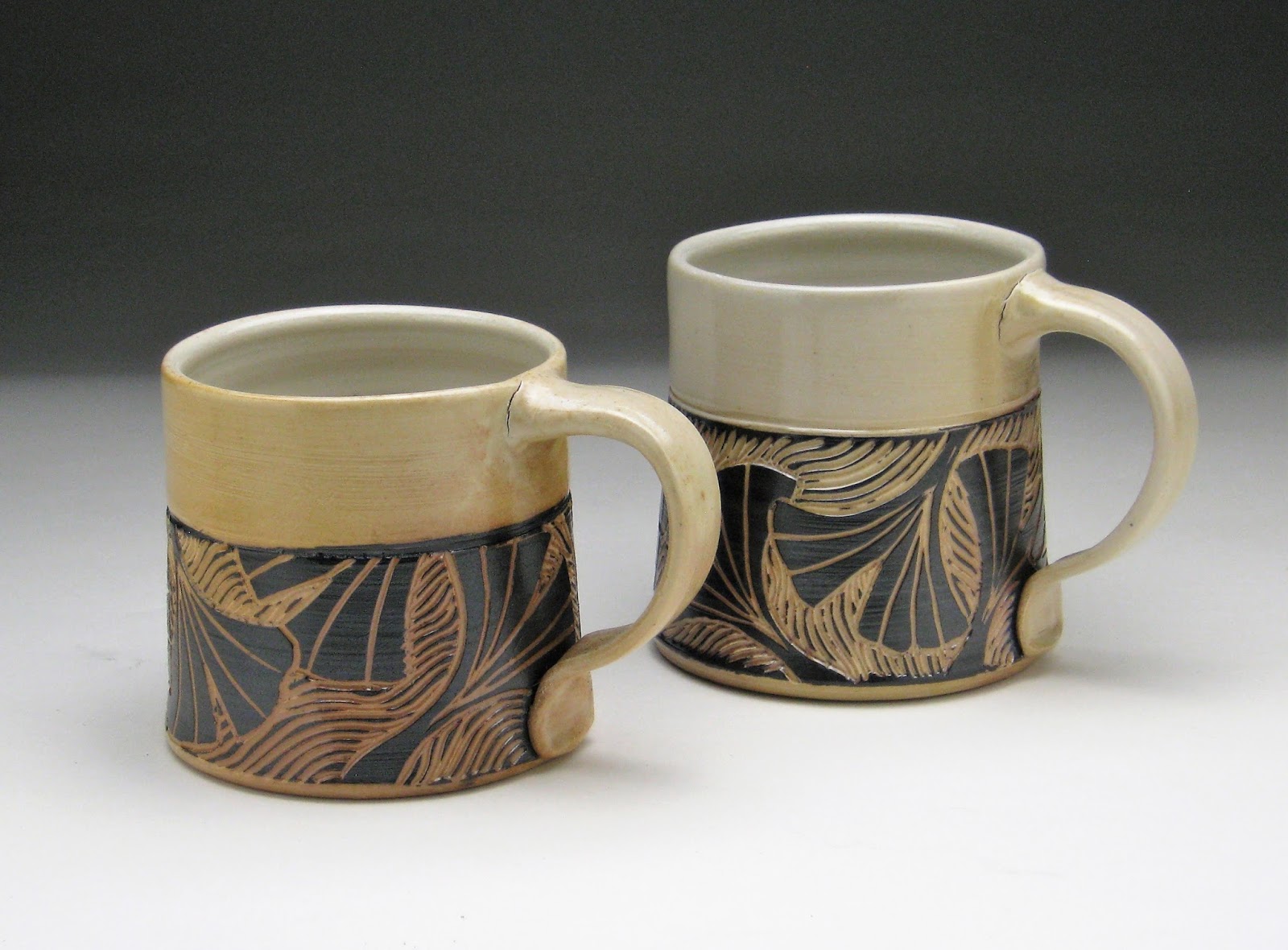 These were made with Laguna B-Mix. I had some lackluster ones and a few with some good toasty-ness. Of course the ones with the best color had other issues, like a slight separation at the handle join and one with an s-crack. I plan to keep the s-crack mug for myself, which I rarely do. The others are still sale-able but at a reduced price. That’s the crap shoot of wood firing and persnickety B-Mix.