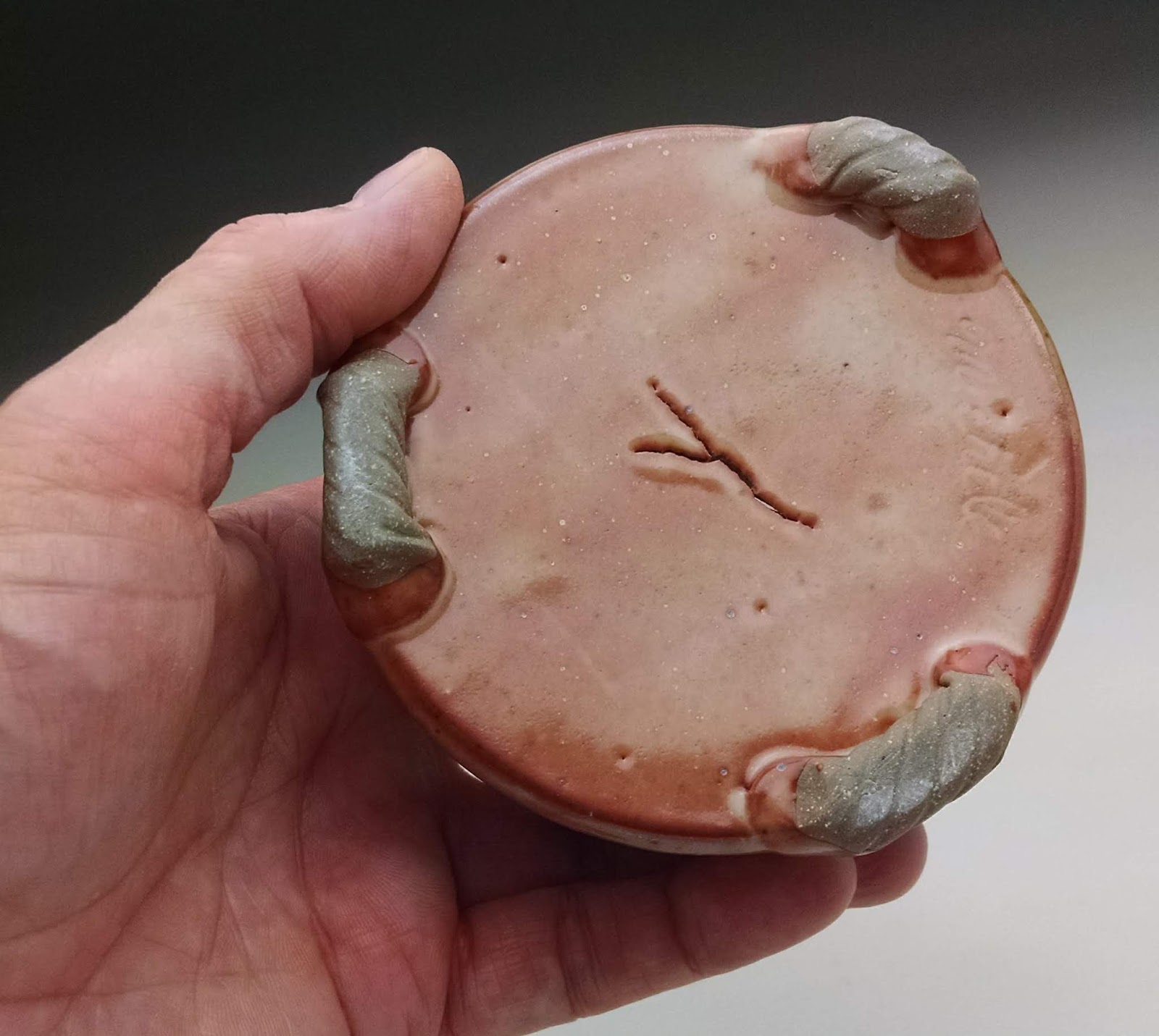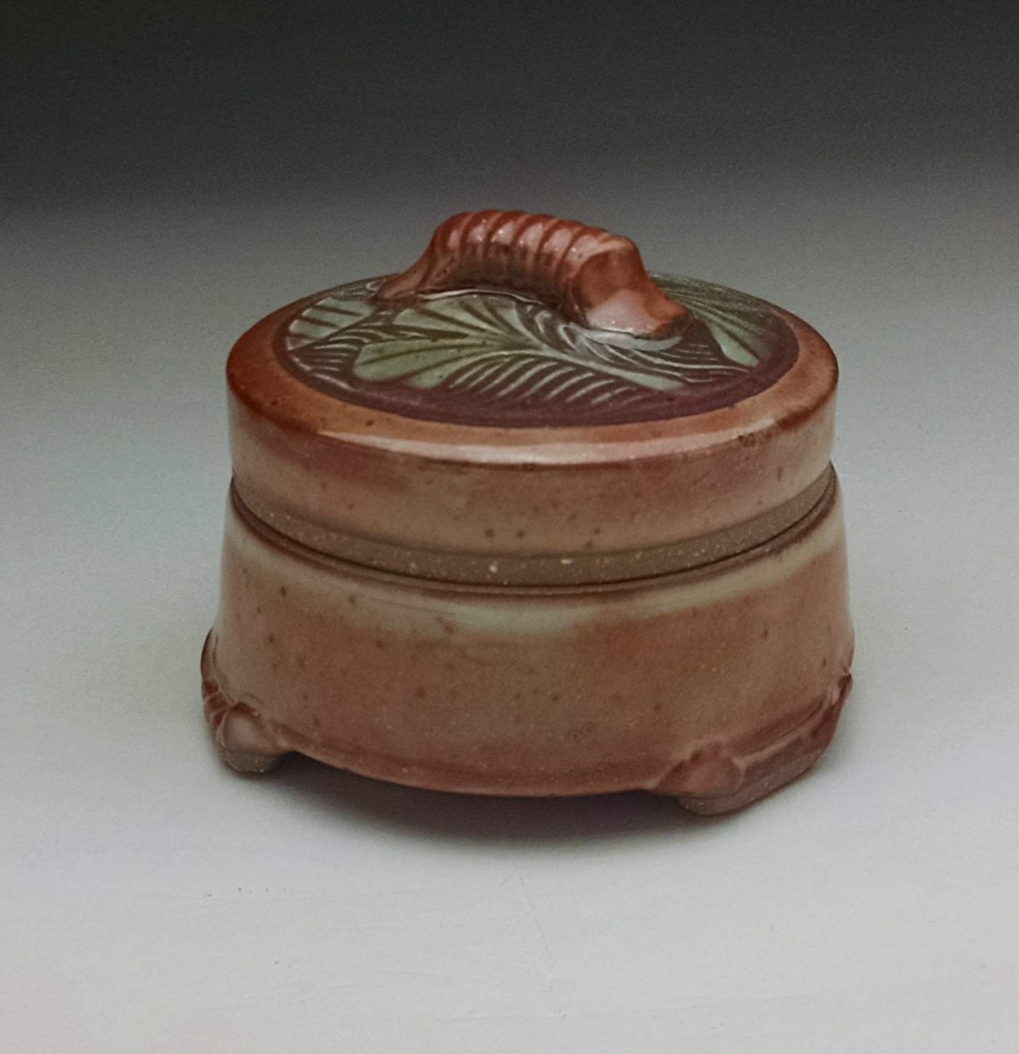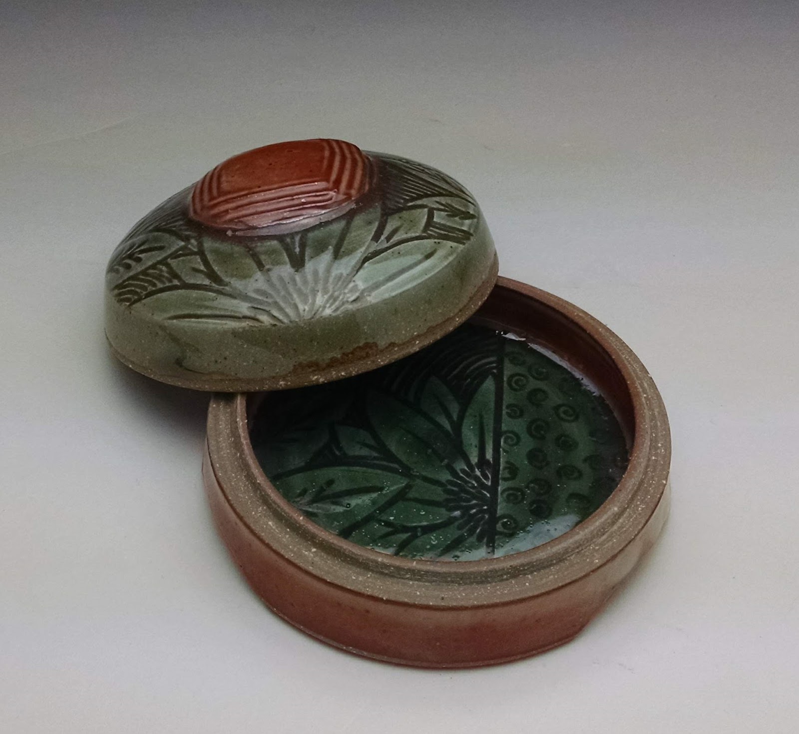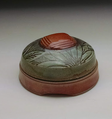 These are my favorites out of all the boxes. Particularly the one on the left. The ash glaze was sprayed on and it worked well with the blue slip.