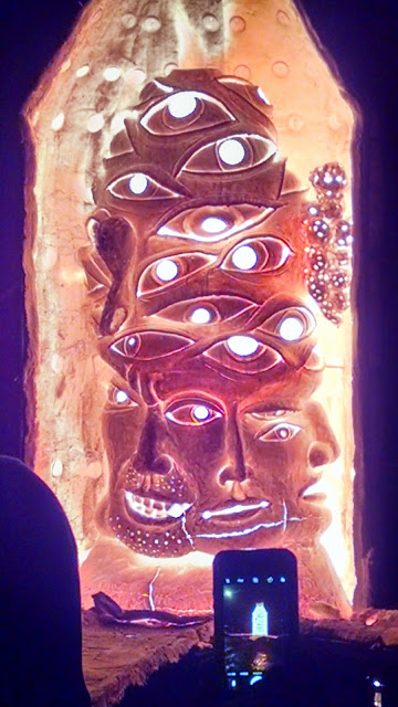 The plan this weekend was that when Jeff was done his shift of stoking the wood kiln, he would come back to Seagrove and bring me to FireFest at STARworks, in Star NC. I really wanted to see this year’s giant sculpture, that was firing throughout the event, being unveiled. At 7pm it was drizzling and 46 degrees outside. I opted to stay home in my pajamas, curled up on the sofa with a glass of wine. Jeff had a few great photos and there was some cool videos posted to Facebook. The sculpture this year was created by Sunkoo Yuh. Firefest is an annual thing. You can read details about the event here: STARworks FireFest