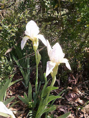 Despite the chilly weather there are signs of Spring in the yard. Friday was a sunny day and while hanging out laundry (yes I do that, and actually enjoy it!) I noticed the iris were blooming near the clothesline. I love irises and we only have white ones here at 505. I have to remember to plant a new variety this year. I am not even sure what time of year they are planted I guess I will have to “google” it.