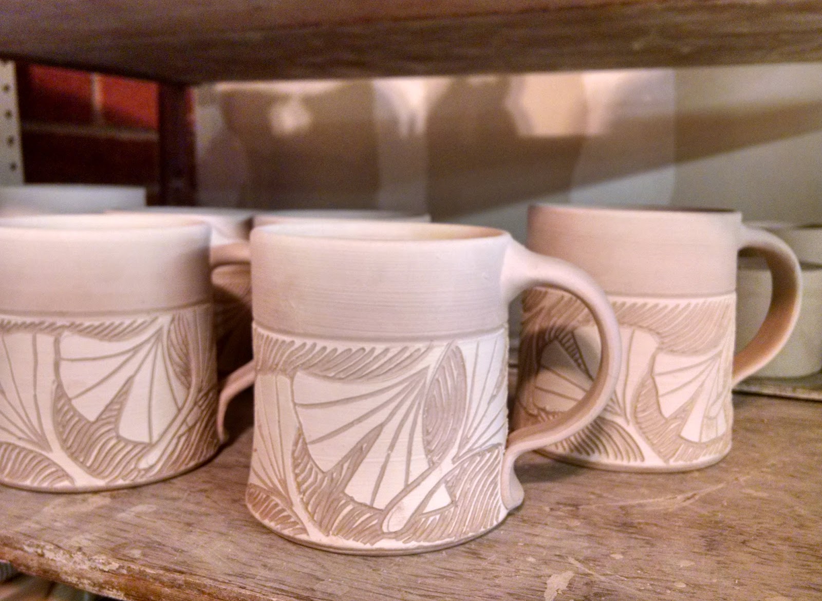 These were made with Laguna B-Mix. I had some lackluster ones and a few with some good toasty-ness. Of course the ones with the best color had other issues, like a slight separation at the handle join and one with an s-crack. I plan to keep the s-crack mug for myself, which I rarely do. The others are still sale-able but at a reduced price. That’s the crap shoot of wood firing and persnickety B-Mix.