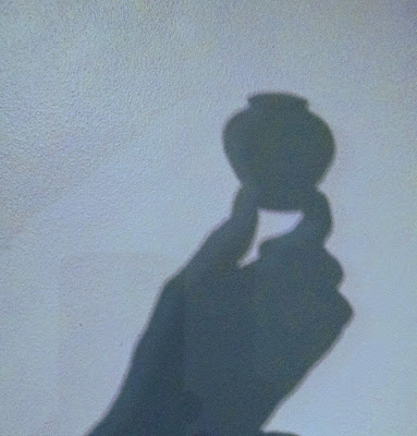 Our good friends Bonnie and David came to visit on Thursday afternoon. Bonnie was due for a pottery lesson and despite not having thrown on the wheel in long time she did an awesome job. As we were finishing up for the evening we spied this shadow on the wall…
