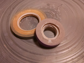 My original thought was to glaze all of them in ash glaze. At the last minute, Jeff convinced me to do two in the green glaze. I am really glad I did because I am loving the contrast of the green with the un-glazed rim. The clay is STARworks East Fork.